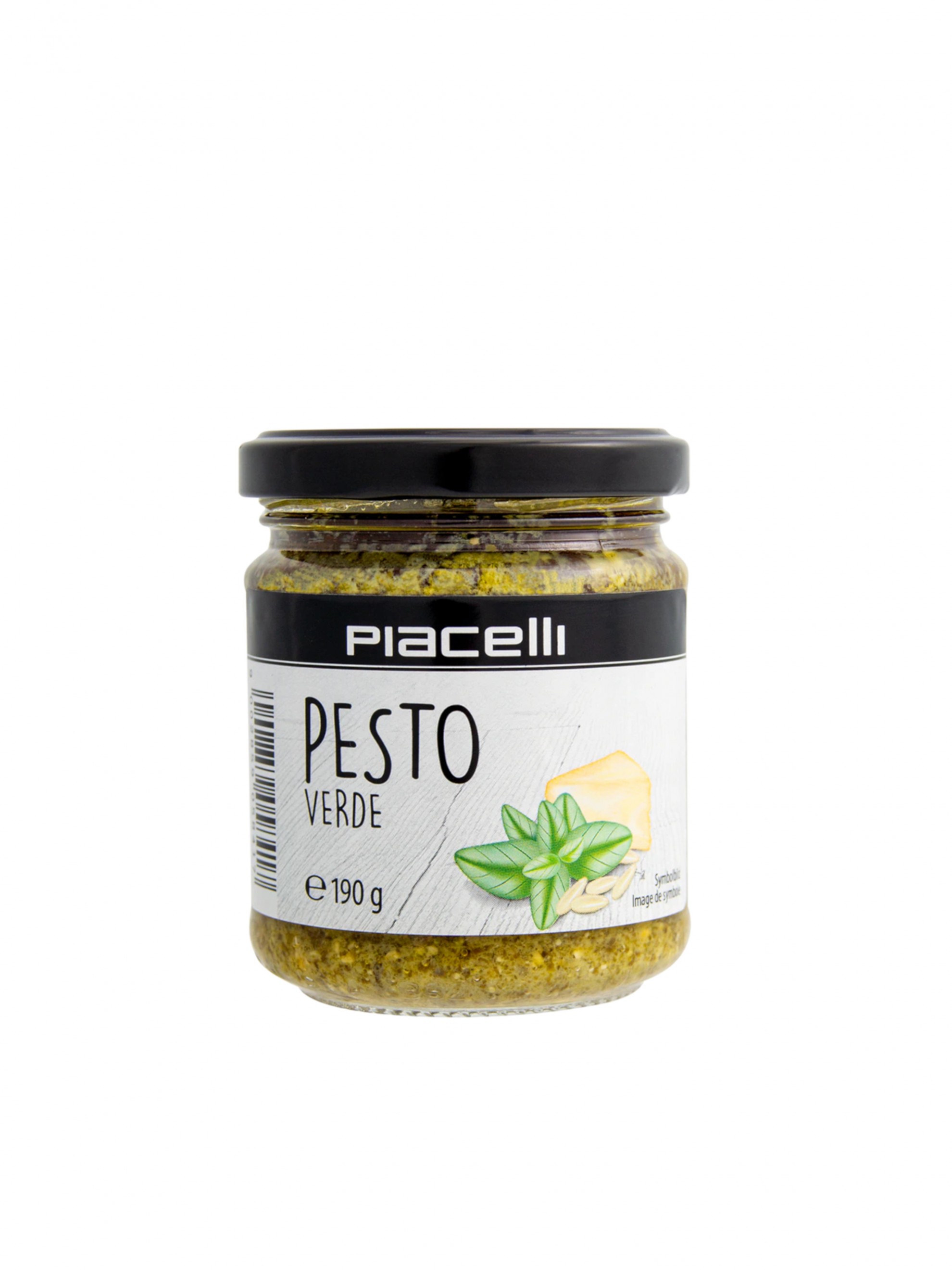 Ulei de floarea soarelui, busuioc 37%, CAJU 7%, amidon de cartofi, fulgi de cartofi, amestec de branza tare (LAPTE, sare, cheag), sare, zahar, nuci de pin 1%, usturoi, regulator de aciditate: acid lactic; arome, antioxidant: acid ascorbic.