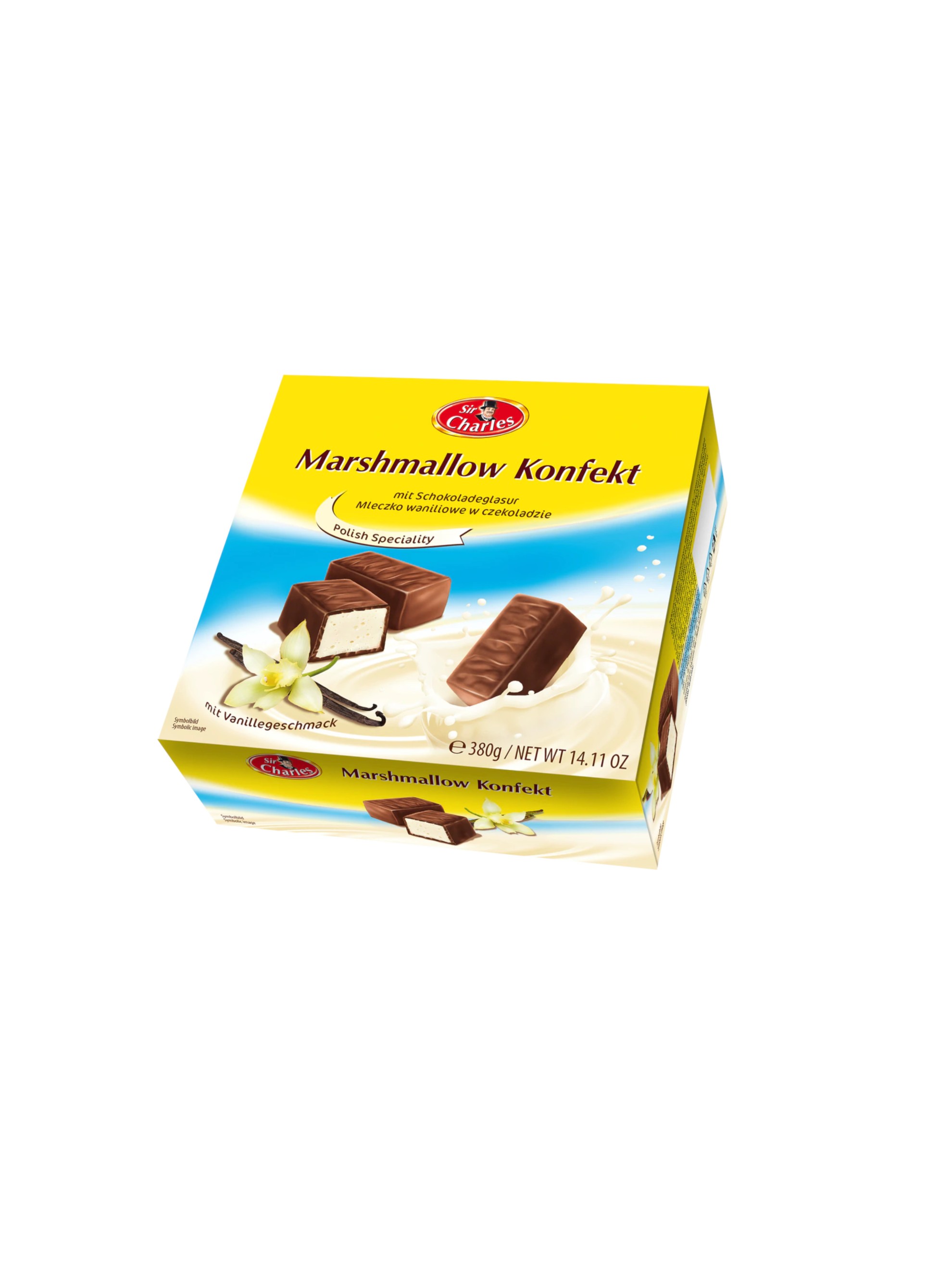 Ingediente: sirop de glucoză-fructoză, ciocolată 24% [zahăr, masă de cacao, unt de cacao, grăsime din LAPTE, emulgatori: E322 (SOIA), E476; aromă], zahăr, apă, grăsime de palmier, LAPTE praf degresat, agent de coagulare: E406; pulbere din albuș de ou de găină (albuș de OU de găină, stabilizator: E1505), regulator de aciditate: E330; extract de ceai verde, conservant: E202; antioxidant: E307; aromă de vanilie, sare, extract de vanilie 0,01%, colorant: E160a.