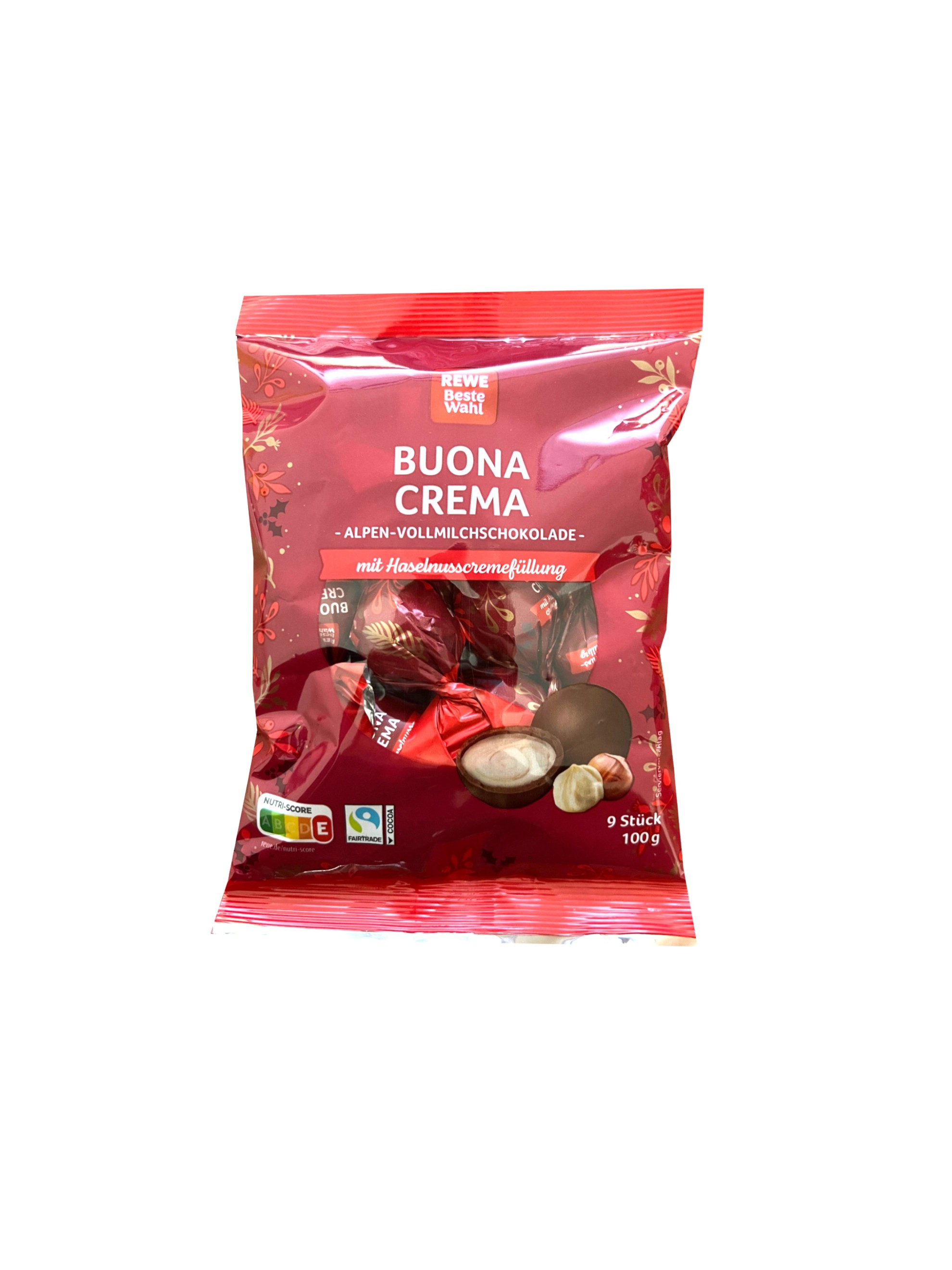 Ingrediente: zahăr, grăsime de palmier, lapte praf integral, 10% unt de cacao, masă de cacao, lactoză, zer dulce pudră, alune prăjite 3%, lapte praf degresat, grăsime din unt, emulgator (lecitină (conține soia)), aromă, extract de vanilie.