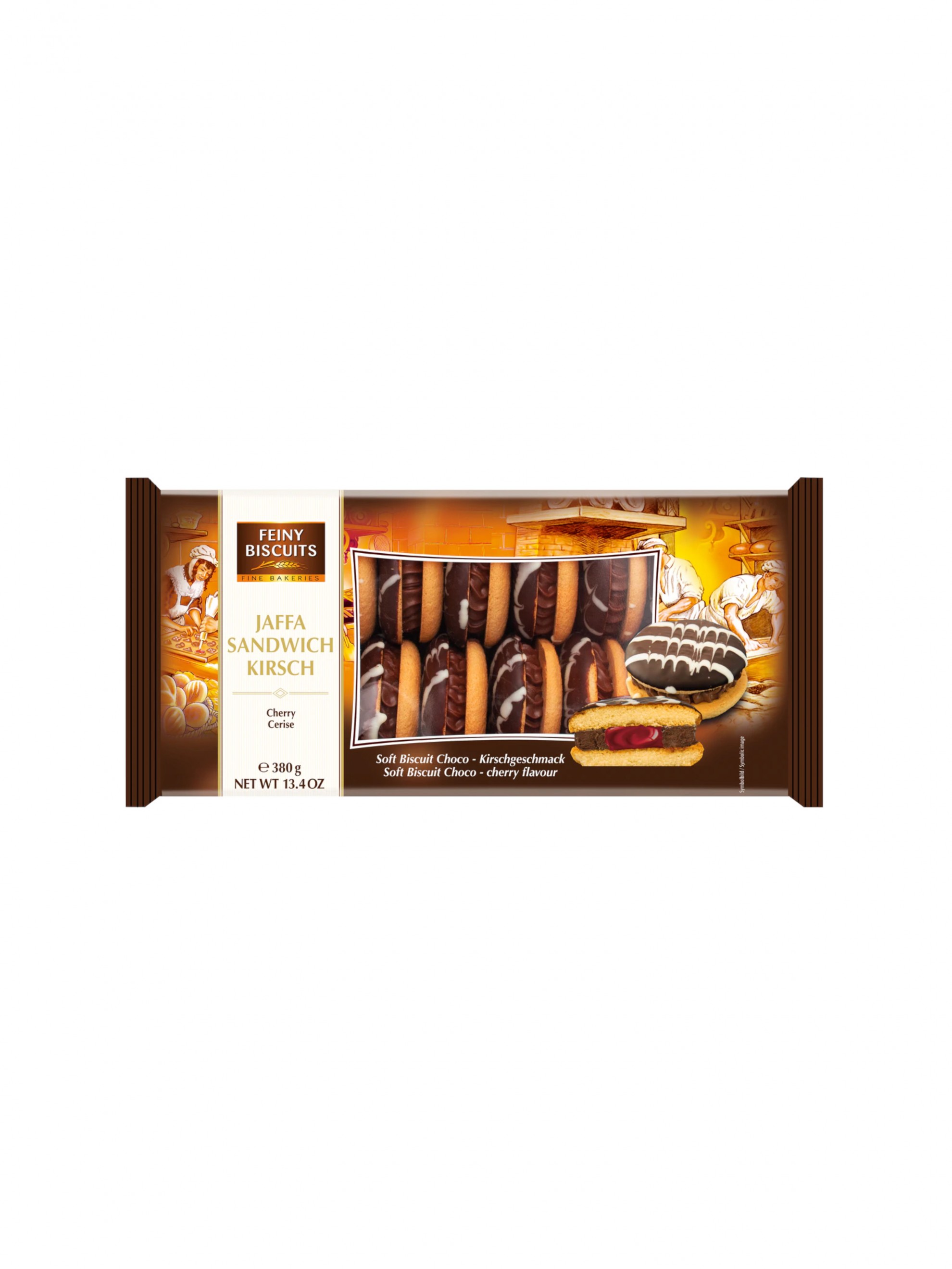 Zahăr, făină de GRAU, umplutură cu aromă de cireșe (piure de mere, zahăr, piure de boabe de aronia, îngroșător: E1414; suc concentrat de cireșe 0,6%, gelifiant: E440; regulator de aciditate: E330; conservant: E202; aromă), grăsime de palmier, uleiuri vegetale (palmier, rapiță), glazură de cacao (zahăr, grăsime de palmier, pudră de cacao degresată 15,5%, stabilizator: E492; emulgator: E322; arome), zer praf dulce (din LAPTE), ouă, sirop de glucoză, cacao pudră degresată 2,4%, amidon de cartofi, ciocolată 1,5% [zahăr, masă de cacao, unt de cacao, emulgator: E322 (SOIA), E476; aroma], agent de ridicare: E503; conservator: E202; emulgator: E322, E471; sare, arome.