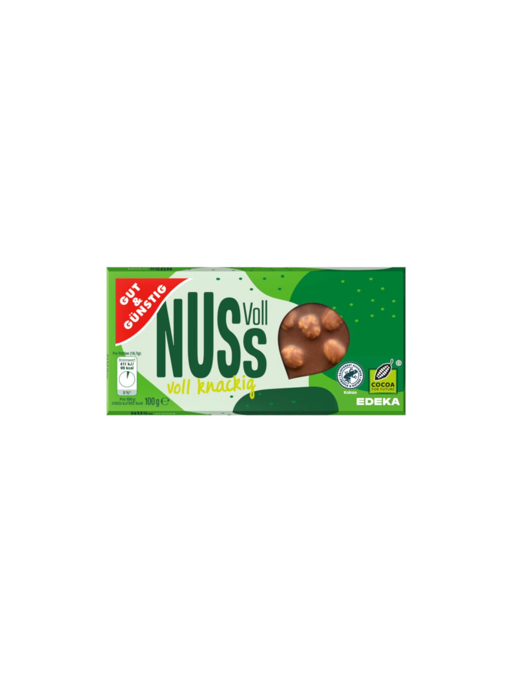 Ingrediente: zahăr, 27% ALUNE DE PĂDURE prajite, unt de cacao, frisca praf, masă de cacao, LAPTE INTEGRAL PRAF, emulgator: lecitină (conține SOIA); extract de vanilie. Produsul poate conține urme de GLUTEN, NUCI.