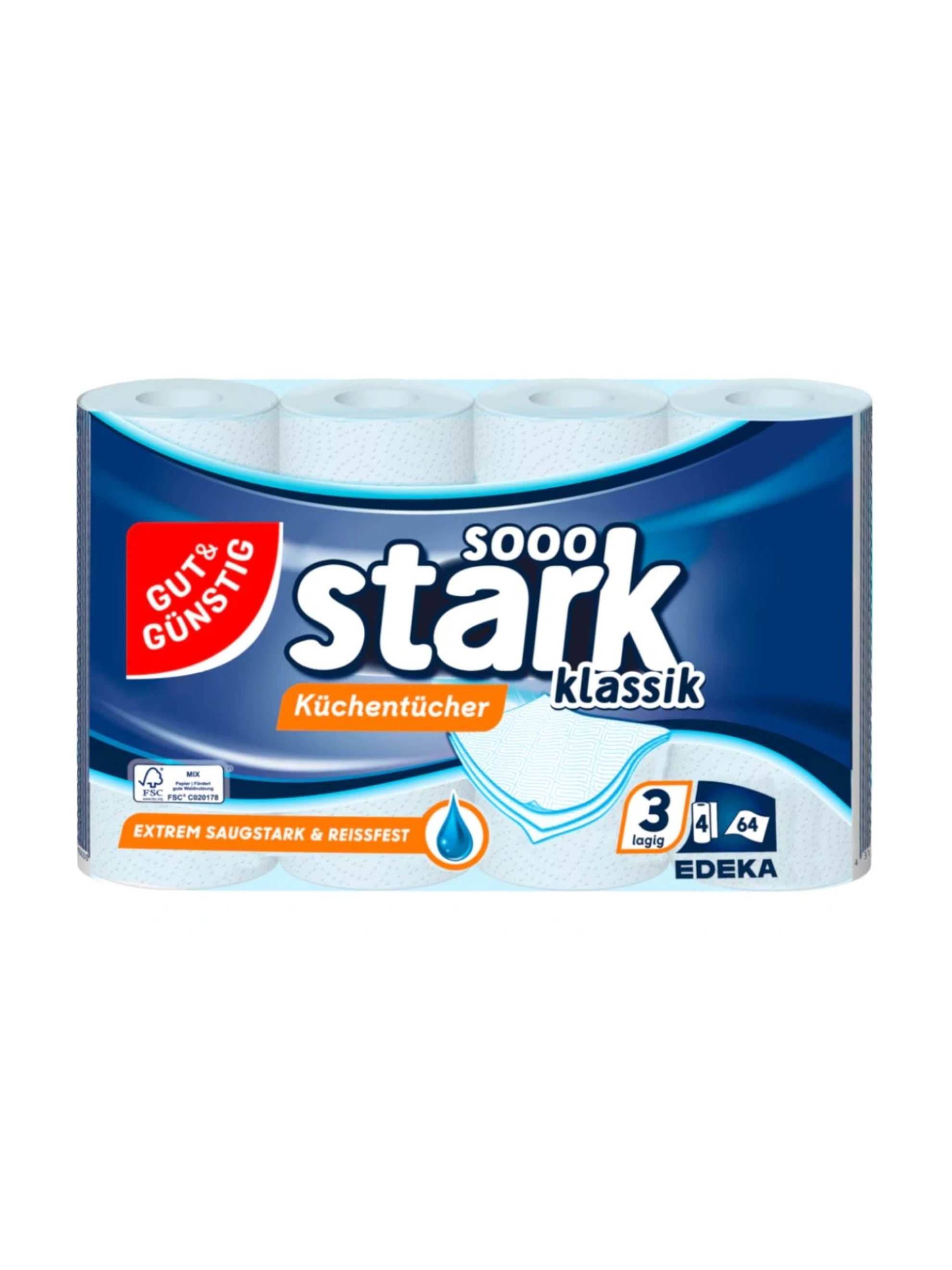 3 straturi, extra rezistente și absorbante, 4 bucăți a câte 64 de foi.