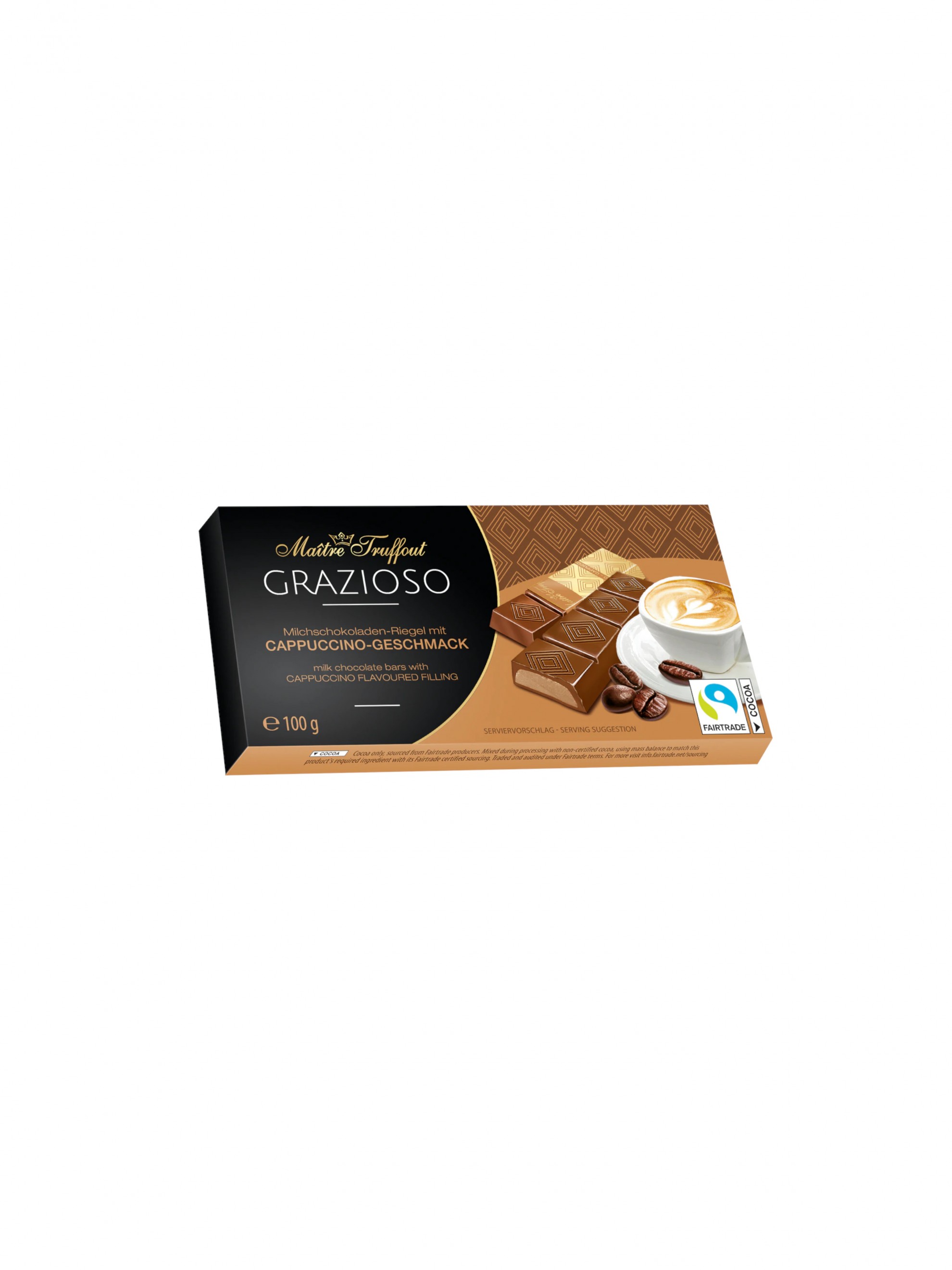 Zahăr, grăsimi vegetale (palmier, shea; în proporții variate), LAPTE praf integral, unt de cacao, masă de cacao, LAPTE praf degresat, zer praf dulce (din LAPTE), grăsime din LAPTE, cacao praf cu conținut scăzut de grăsimi, emulgatori: E322 (SOIA) , E476; arome, pasta de alune, pasta de arahide.