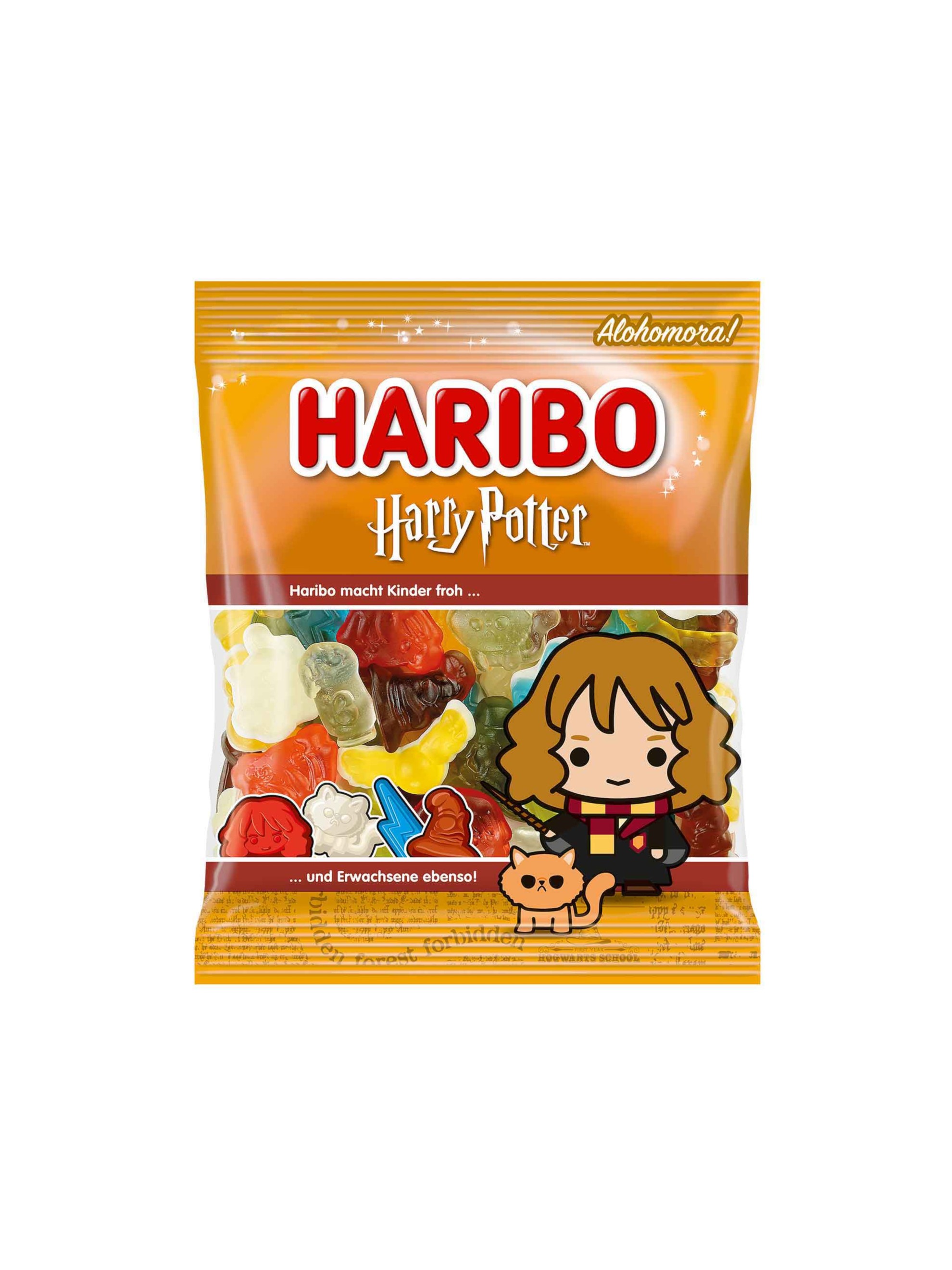 Haribo Harry Potter Hermione Granger oferă figurine dulci din jeleu cu fructe, unele cu bezea, în forme magice care amintesc de lumea fermecată a orașului Hogwarts.