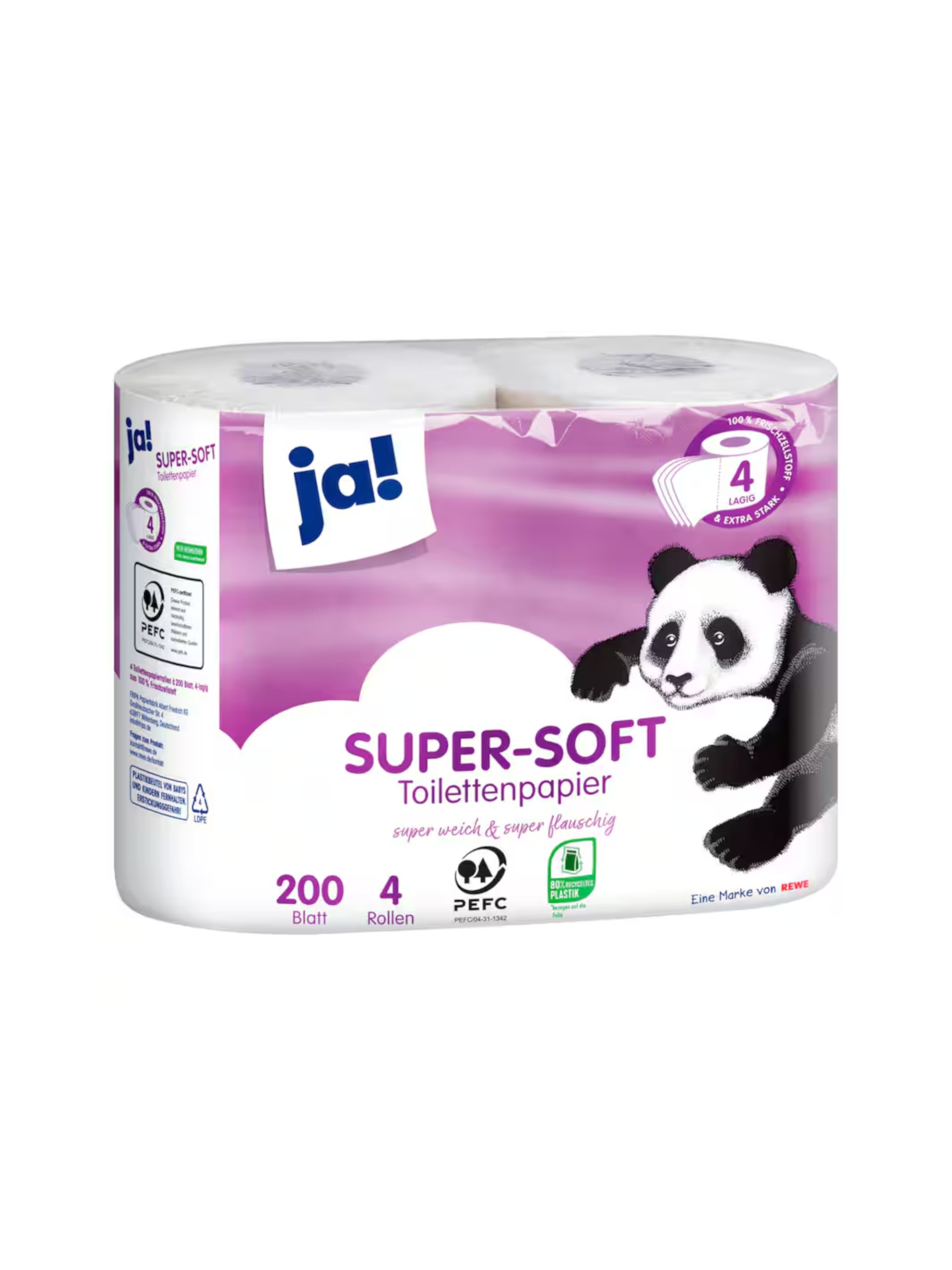 Hârtie igienică super moale, 4 straturi, 4 role x 200 foi.