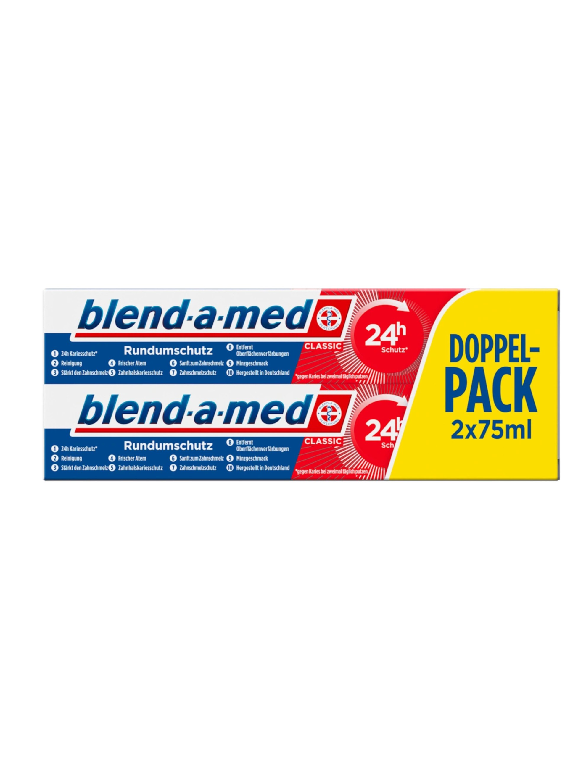 Pasta de dinți blend-a-med Classic, într-un pachet dublu practic, oferă protecție completă pentru dinți puternici.