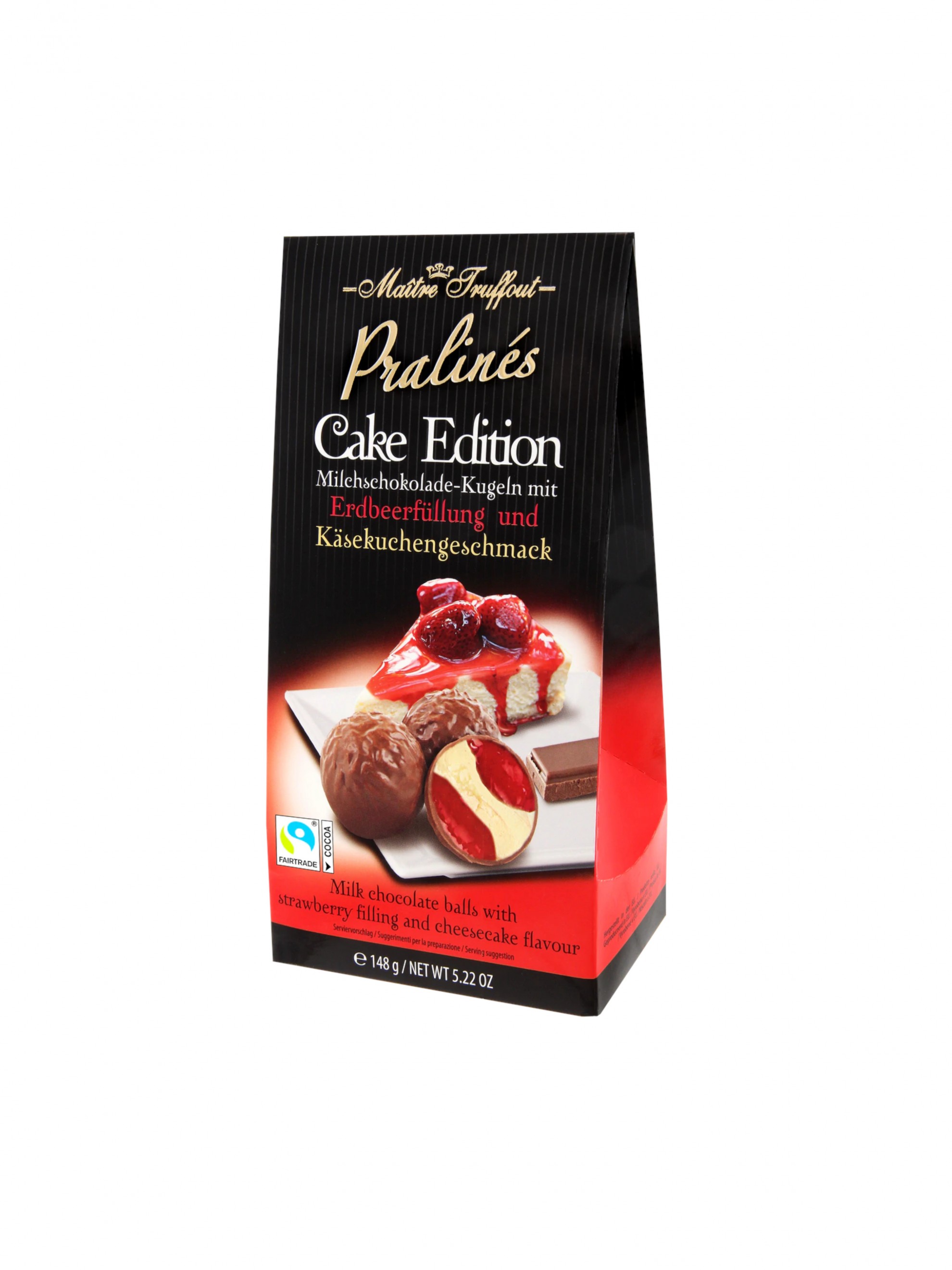 Ciocolata cu lapte [zahar, unt de cacao, LAPTE praf integral, masa de cacao, LAPTE praf degresat, emulgator: E322 (SOIA); Pastă de alune, pastă de arahide, extract de vanilie], umplutură cu aromă de cheesecake [zahăr, grăsimi vegetale (palmier, shea; în proporții variate), LAPTE praf integral, LAPTE praf degresat, grăsime din LAPTE, aromă naturală (conține LAPTE), emulgator: E322 ( SOIA)], umplutura de capsuni [zahar, sirop de glucoza-fructoza, piure de capsuni, umectant: E420; regulatori de aciditate: E330, E331; aromă naturală, concentrat de suc de morcovi negri].