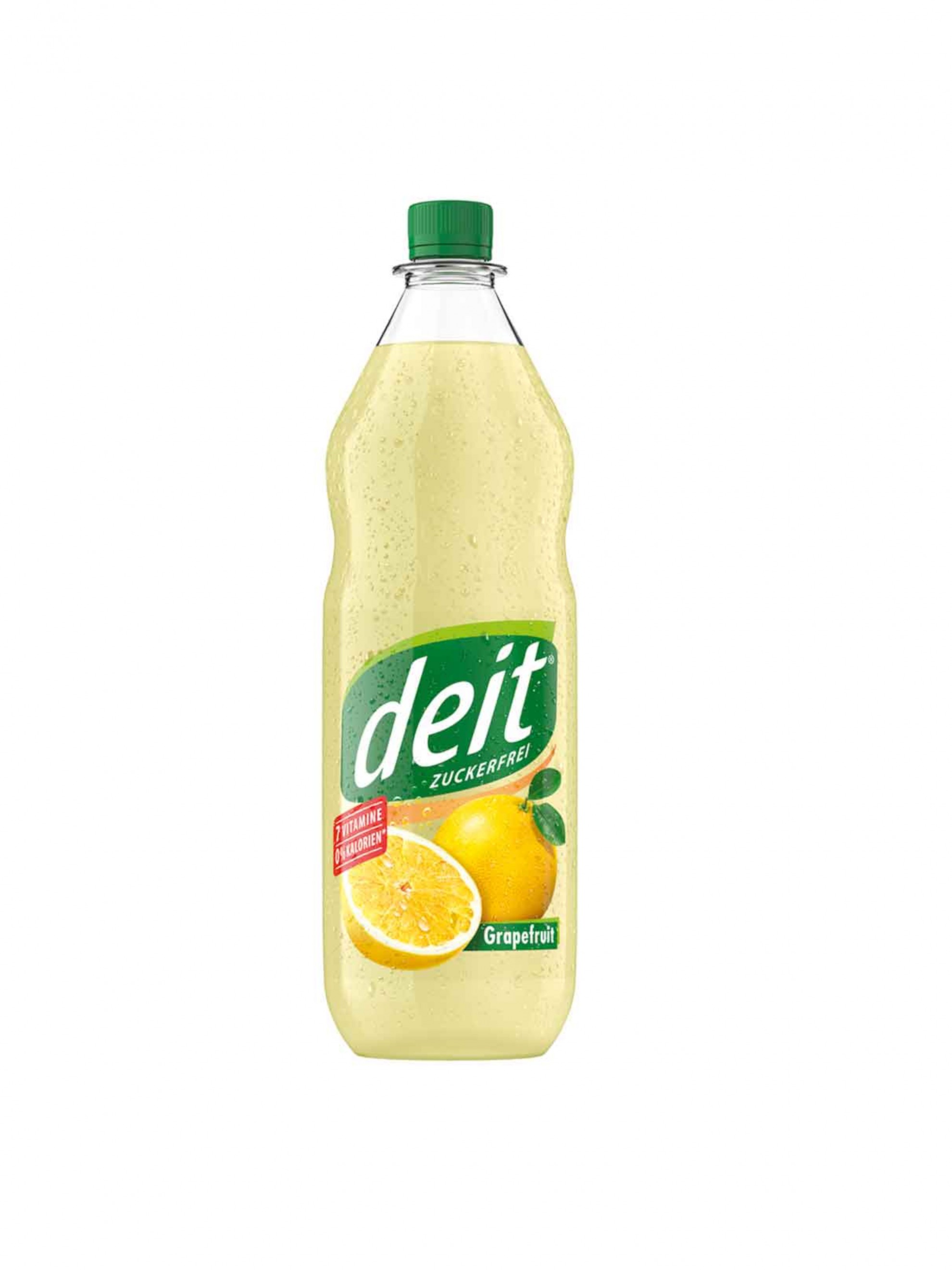 Cu indulcitori, continut de fructe: 6% (3% grapefruit), cu adaos de 7 vitamine, vegan.